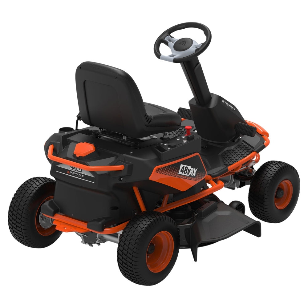 The YF48vRX-RER38 brings cordless convenience and superior performance to maintaining a beautiful yard all season long. The brushless motor and 48v long-lasting battery allow for the mower to cut up to 1.5 acres on a full charge. This mower is loaded with features including push-button forward and reverse control, cruise control, USB power ports, and an LED headlight. The twin-blade 38″ deck includes the Yard Force Vortex cutting system for fast and efficient cutting and clippings discharge and mulching.